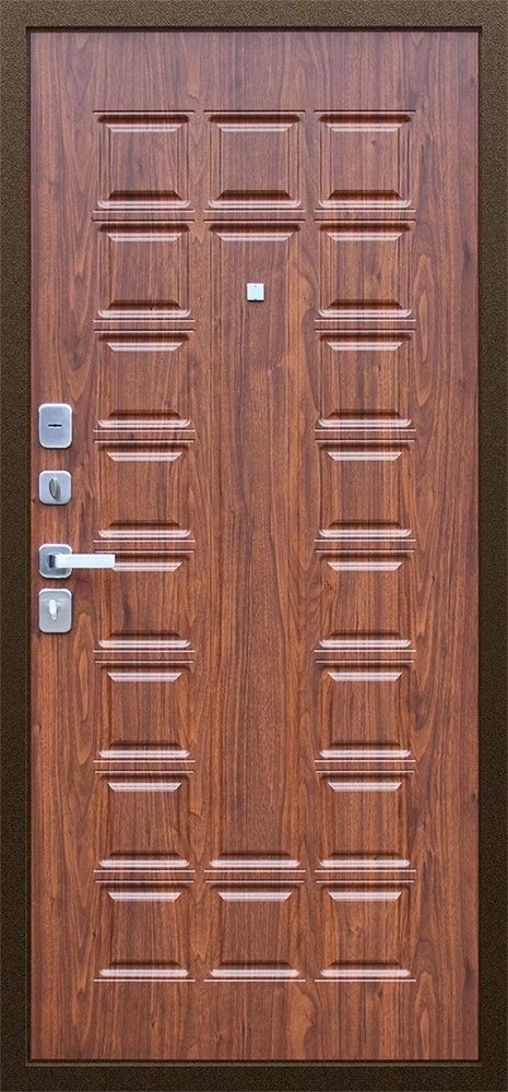 Надежная входная Дверь Спартак Орех темный премиум класса по цене 34 799 руб. Большая толщина стали защитит от проникновения в ваш дом, квартиру или коттедж. Используется очень качественная фурнитура: замки, цилиндры, ручки, защелки. Покрытие и отделка двери изготовлено под внимательным контролем производителя. Дверь имеет долгий срок службы и гарантию.